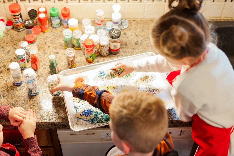 A 30-minute session focused on connection and real moments, captured right at your home — whether that’s the porch, the cozy living room by your Christmas tree or baking cookies together in the kitchen.